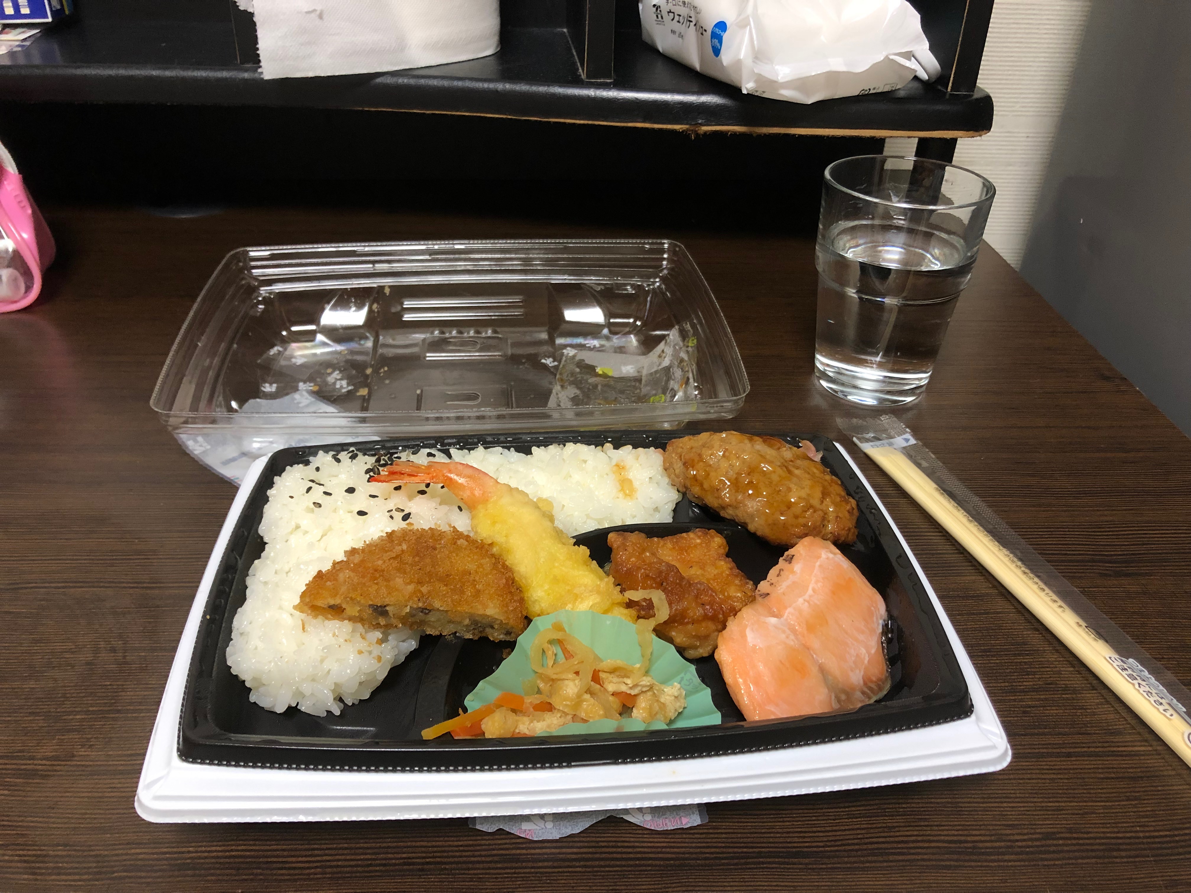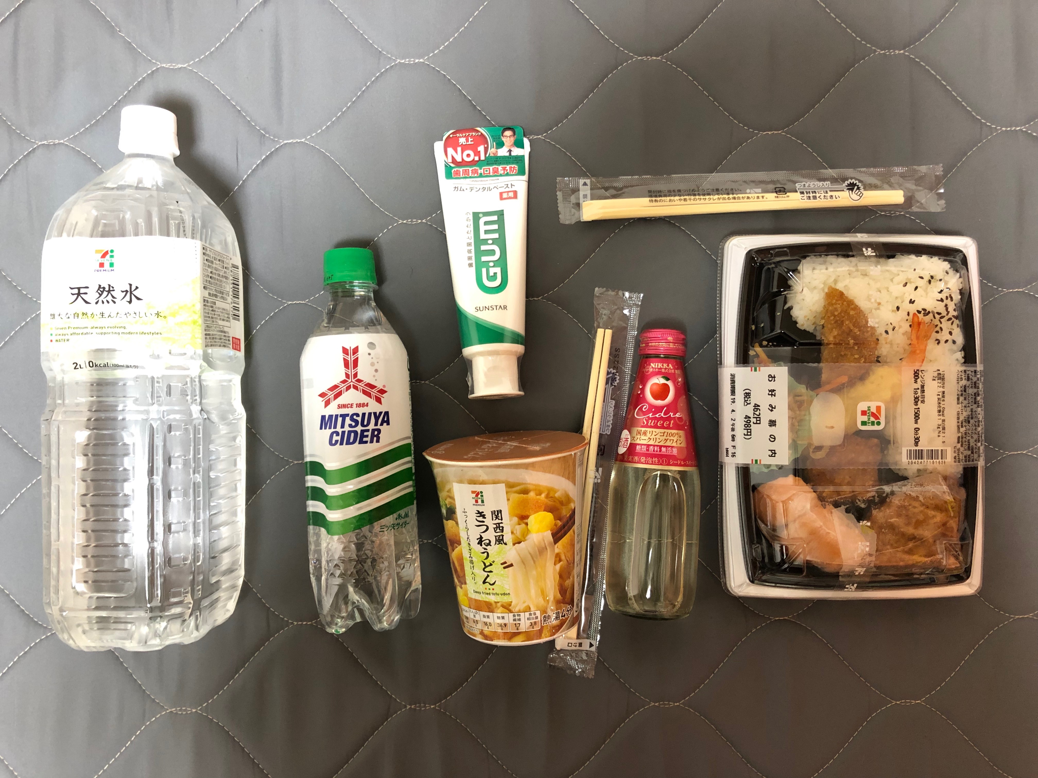 도시락 498엔, 키츠네 우동 120엔 정도, 닛카 203엔이었던가